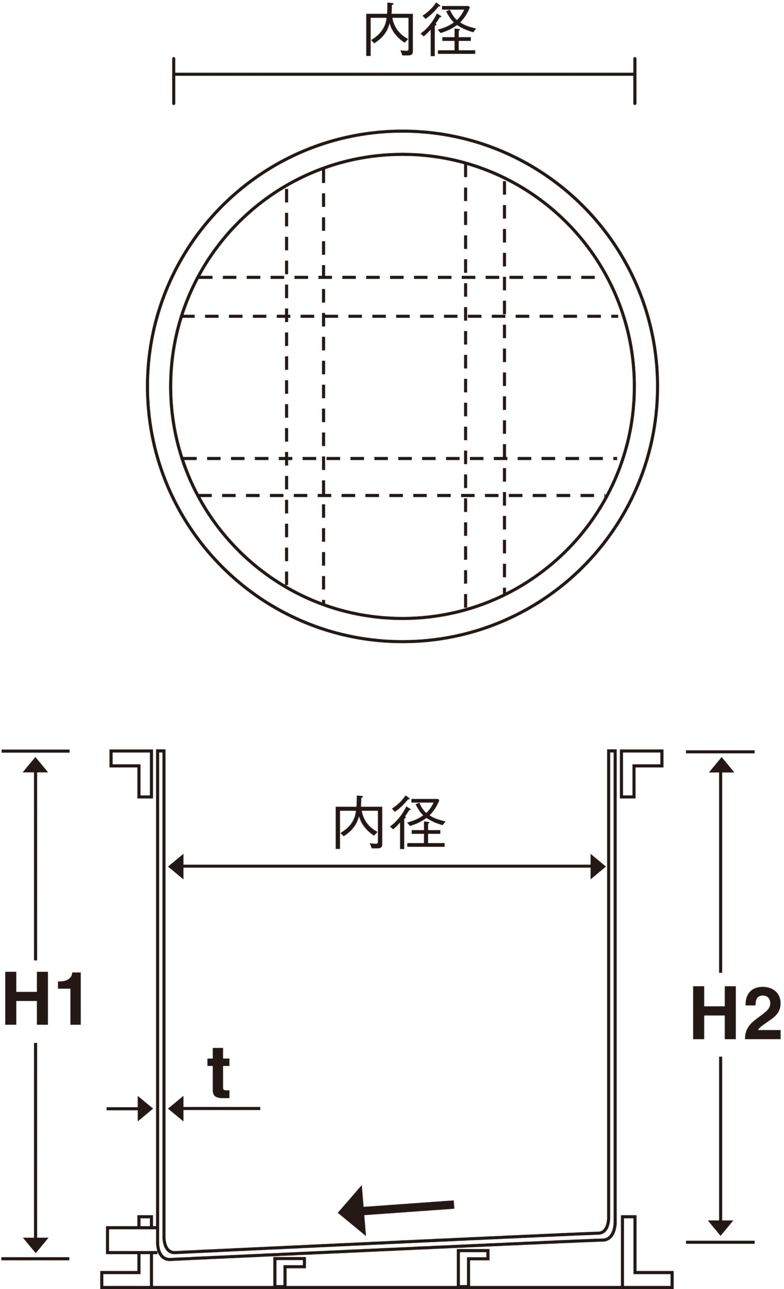 底面テーパー(斜め)タイプなので、ほぼ全量排出可能です。